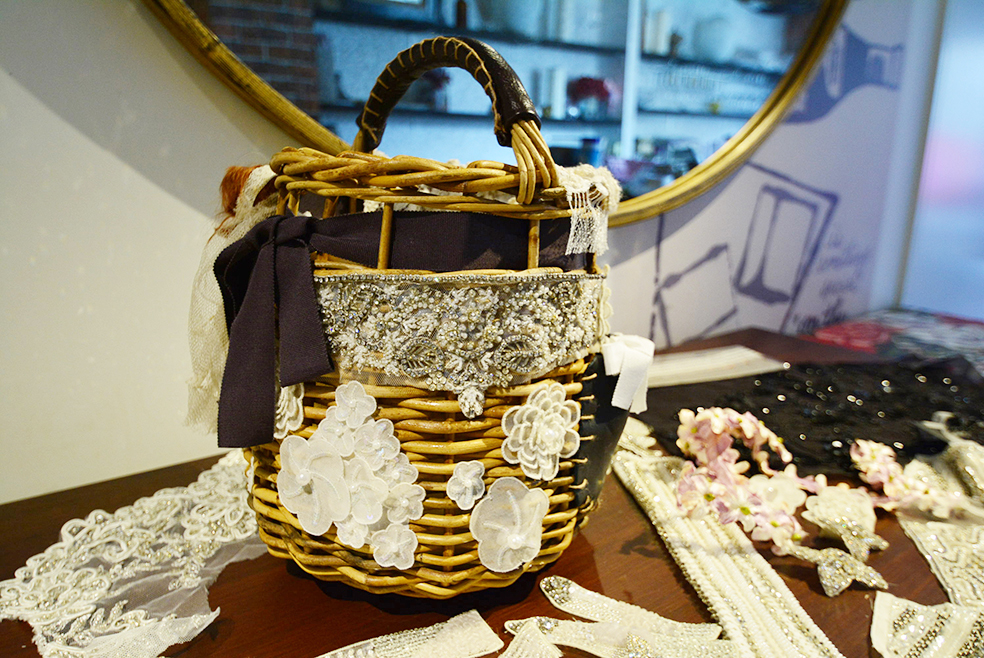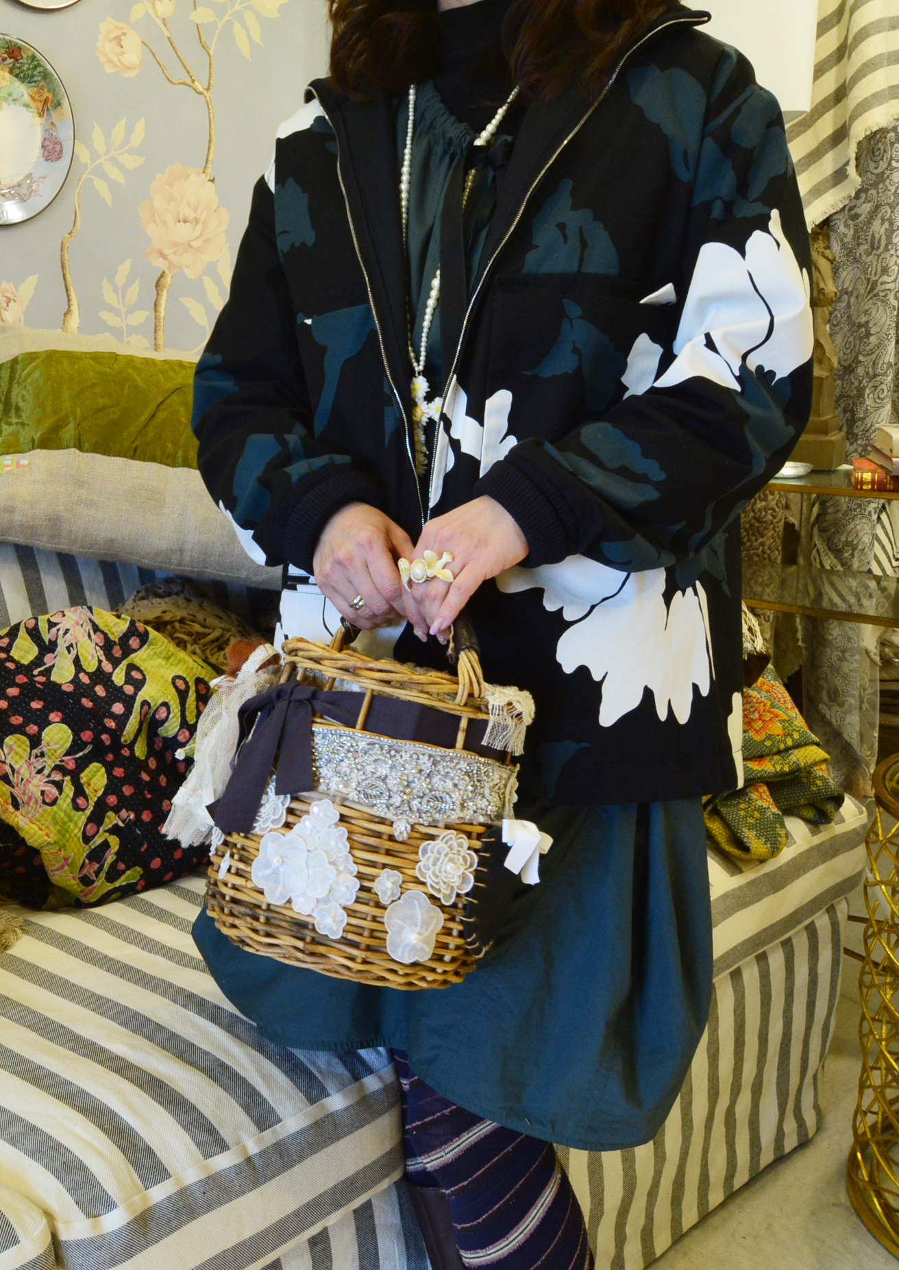今回はイタリアのオートクチュール素材をあしらったカゴバッグです。