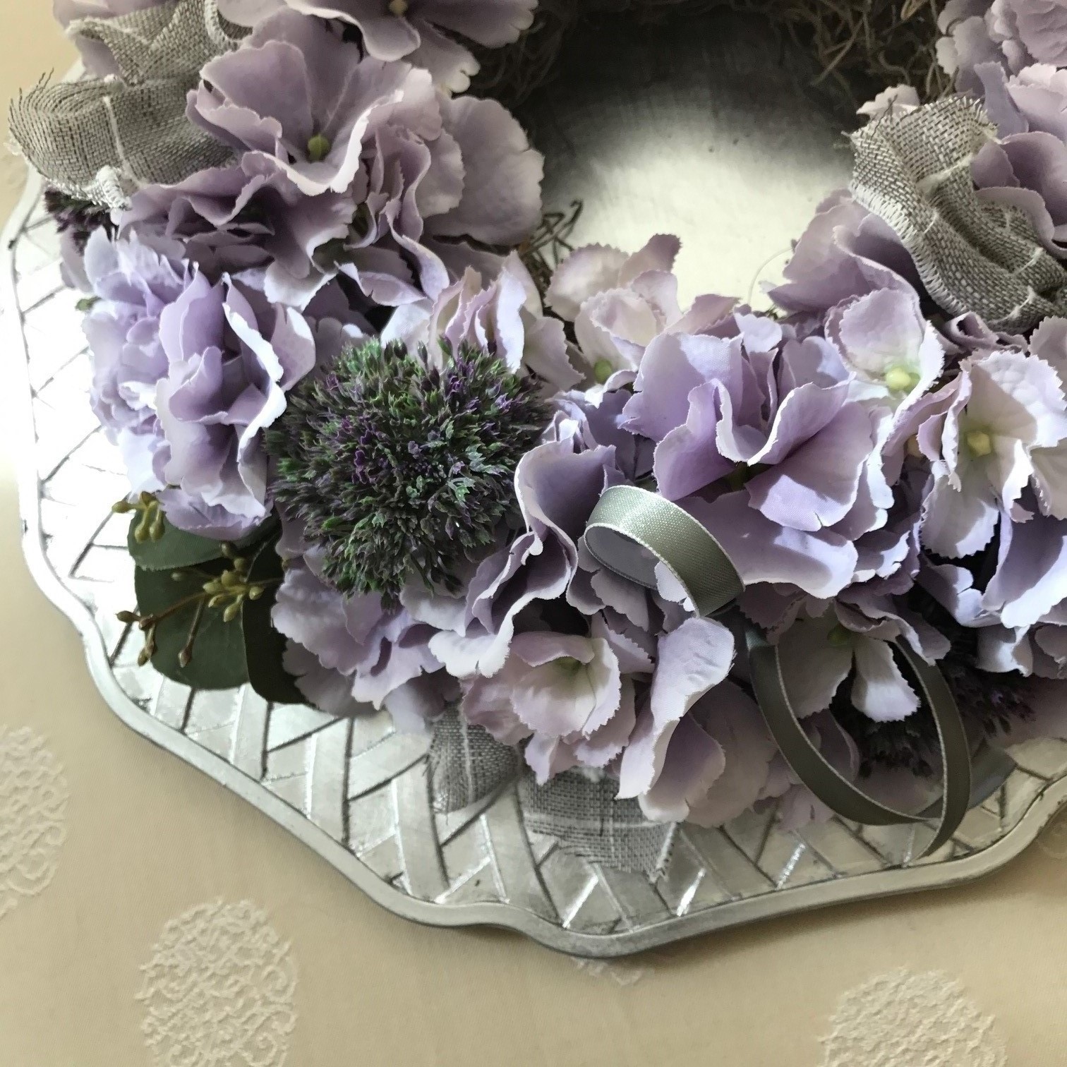 毎年大人気の アジササイのリース。その年に気になるカラーや質感のアジサイを