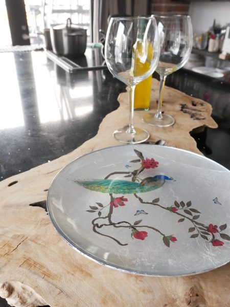大きなキャンバス(お皿)に、お好きなシノワズリのデザインを貼り付けていきます。センターを外して貼ってみたり、枝を切り貼りしたりと…. デザインを楽しんで下さい。