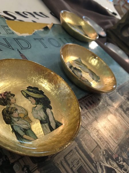 日常でも使える銀箔金箔を使ったモダンでクールなディクパージュのお皿づくりのワークショップ。