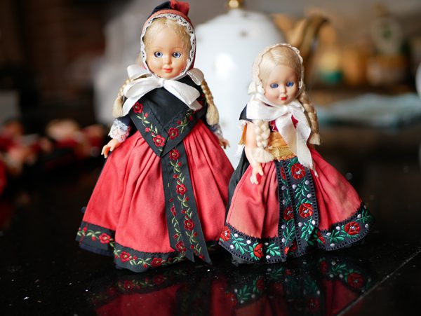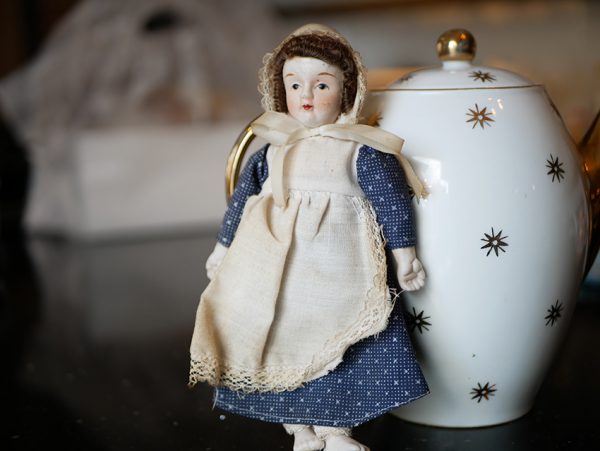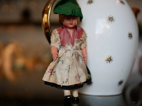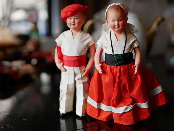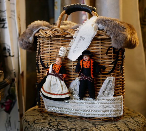 ↑こちらのドールは、リボンの刺繍に注目ですね。頭巾のレースも細やかです。姉妹でしょうか?どんな人がこの人形で遊んでいたんでしょう?今頃日本に上陸していると知ったら持ち主も驚くでしょうね。