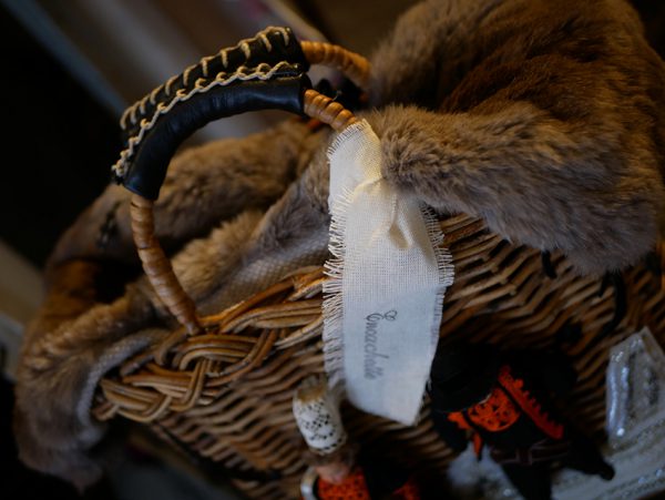 バッグのフタはラビットファーですので手触りがとっても優しい。そしてバッグの中もドールに合わせてmalicoさんが1点づつ選んで縫製!というきめ細やかな作り。取り外しできますので、年中お使い頂けます。