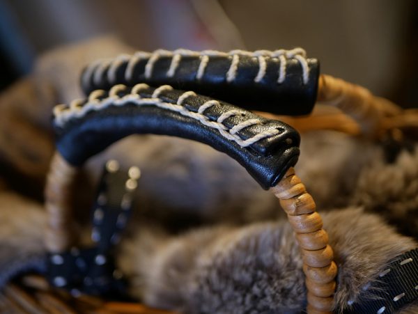 持ち手も皮で覆っていきます。