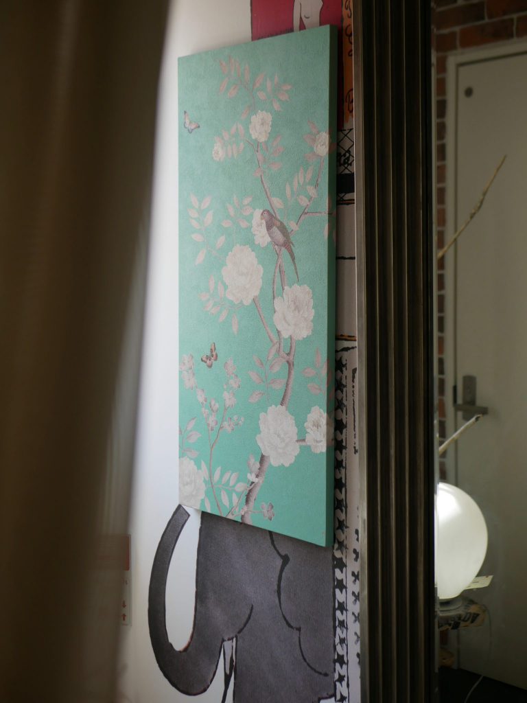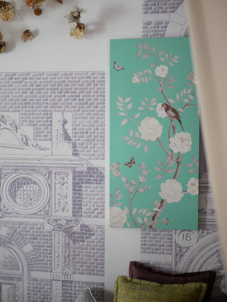 しかし、壁紙の貼り替えはコストが掛かり、賃貸住宅ではほぼ不可能に近い…と諦めていた方も多くいらっしゃったかと思います。そんなお客様の為に、シノワズリを気軽に楽しんで頂く為にアートパネルの制作に至りました。
