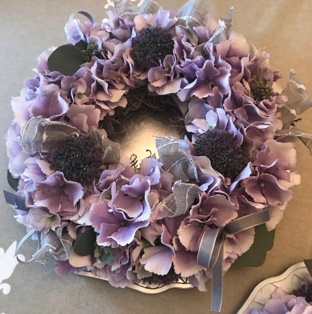 ラベンダーカラーのグラデーションが美しいアジサイを使ったリース
