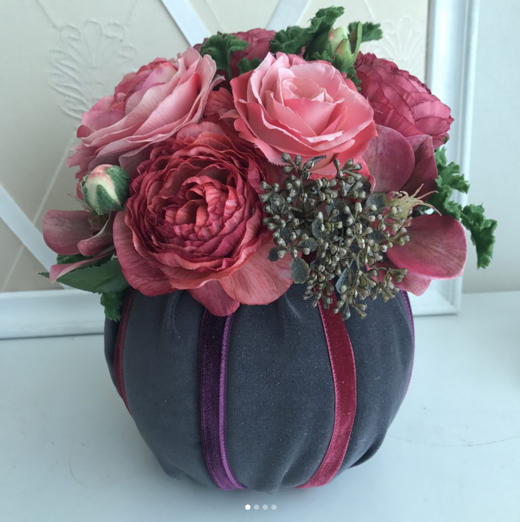 花器はかぼちゃをイメージして…. 花器からつくるアレンジです。