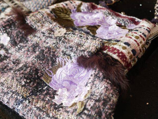 シャネル御用達のファンシーツイードでバッグを作るワークショップ。