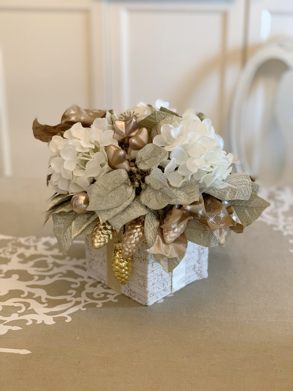 クリスマスのテーブルコーディネートを引き立ててくれる作品でもあり、このアレンジを主役にしテーブルを考えていくのも楽しそうですね。