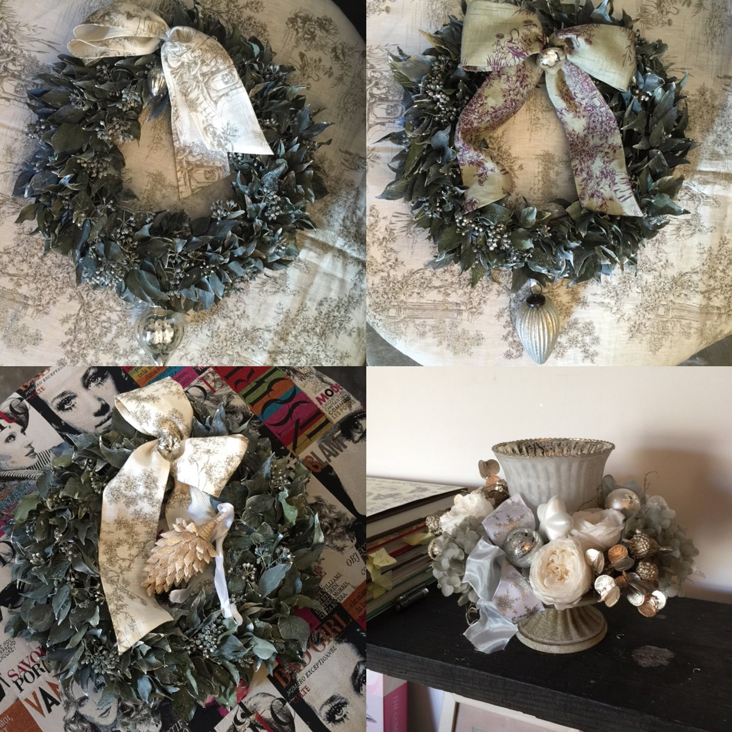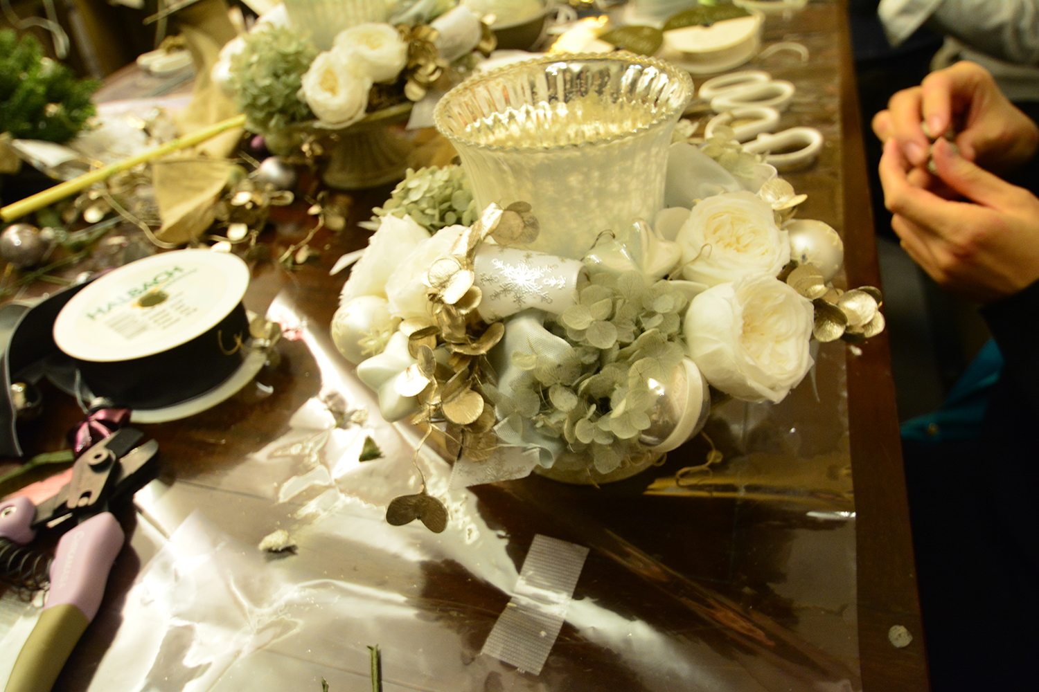 クリスマスボールにリース、フラワーのキャンドルホルダーなどなど。これからクリスマスや年末に向けて、何かとあつまりが多い時期ですよね。このような作品が一つあるだけでインテリアの雰囲気が明るくなります。ウキウキしてしまいますよね!