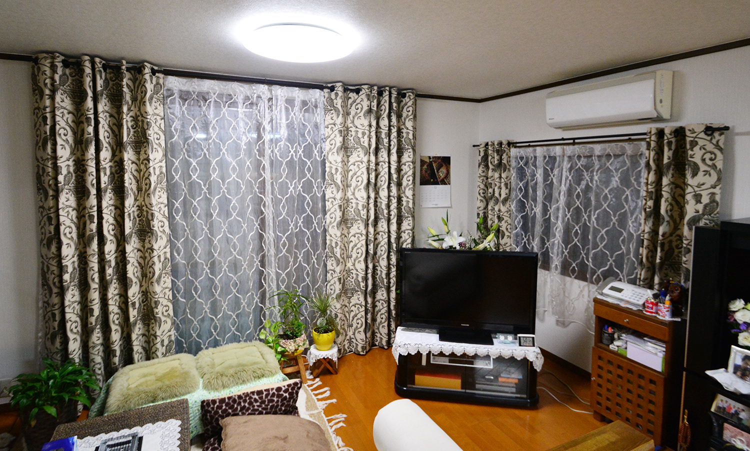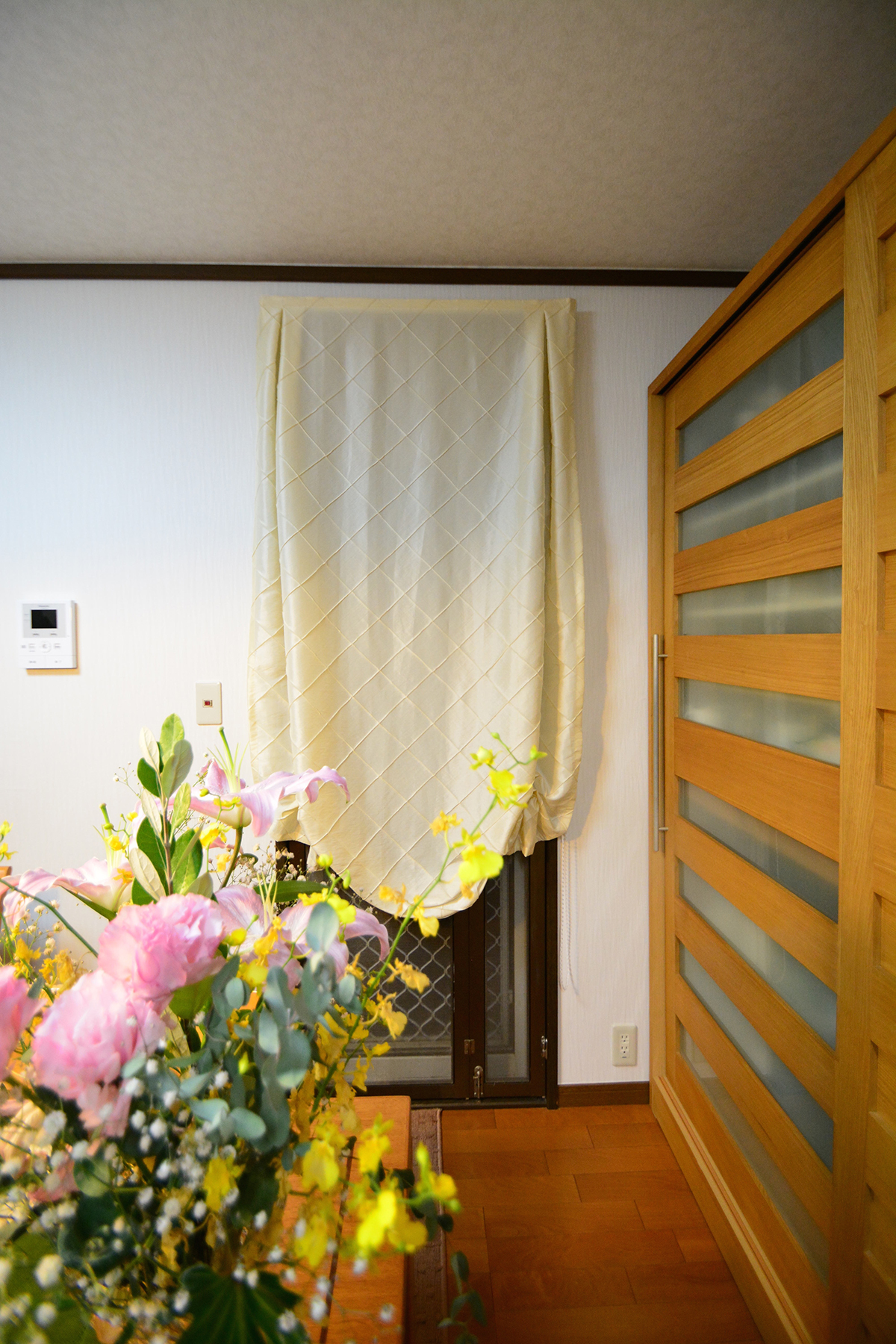 先日完成したばかりのW邸のカーテンをご紹介させていただきます。インテリアで気分を変えたいという施主さんがリサブレアにご来店されたのは2ヶ月程。淡いグリーンのカーテンを10年間大切に使っていました。