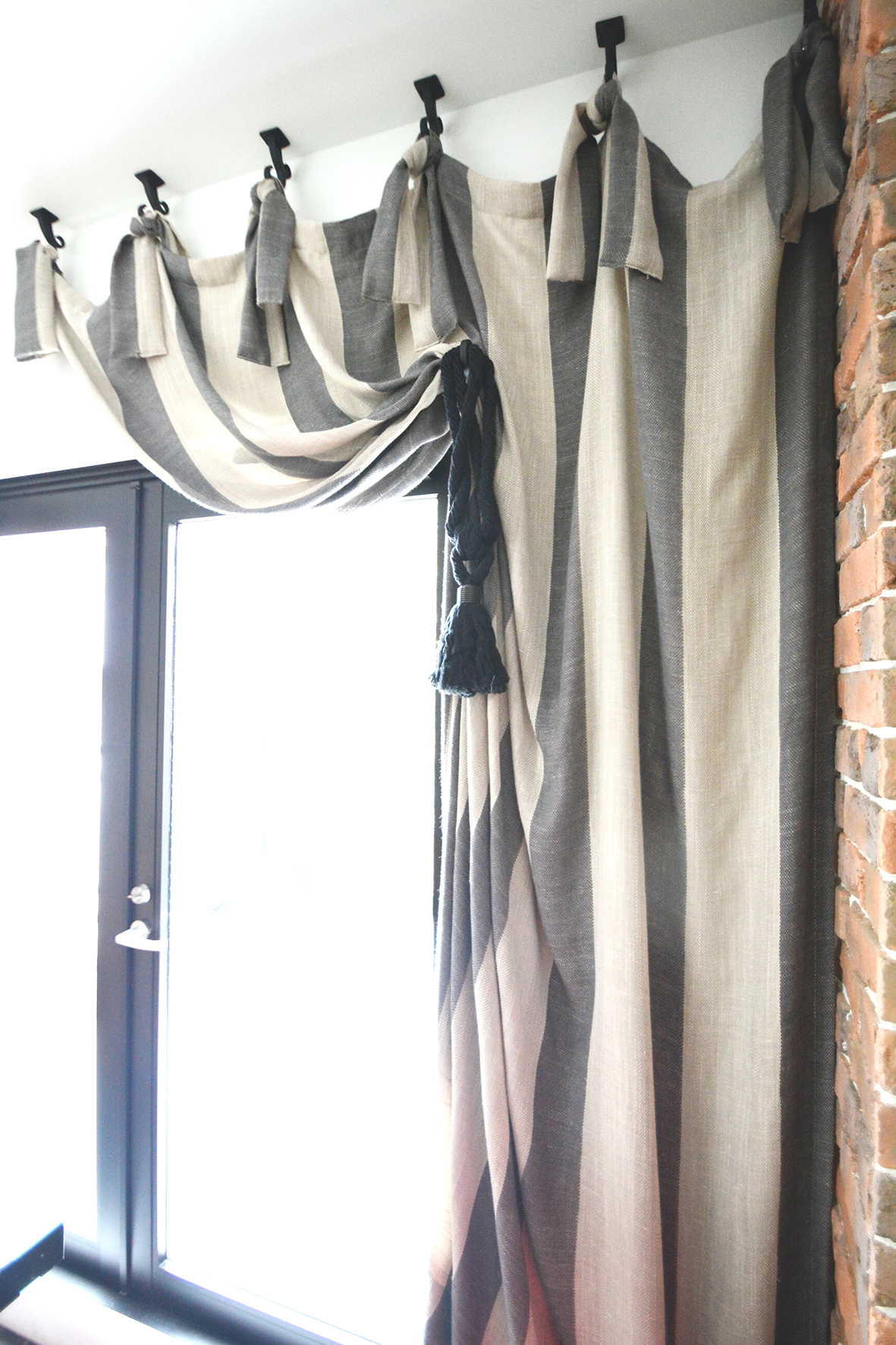 最初、トワルドジュイ柄を探しておられたのですが、悩んだ末リサブレア5Fのカーテンを見てSHINING STRIPでつくられた間仕切りカーテンです。透け感がある生地で、部屋の間仕切りとして、重くなりすぎず且つしっかり目隠しができる優れものです。リネンが入っていますのでドレープが美しい私たちも大好きな生地です。