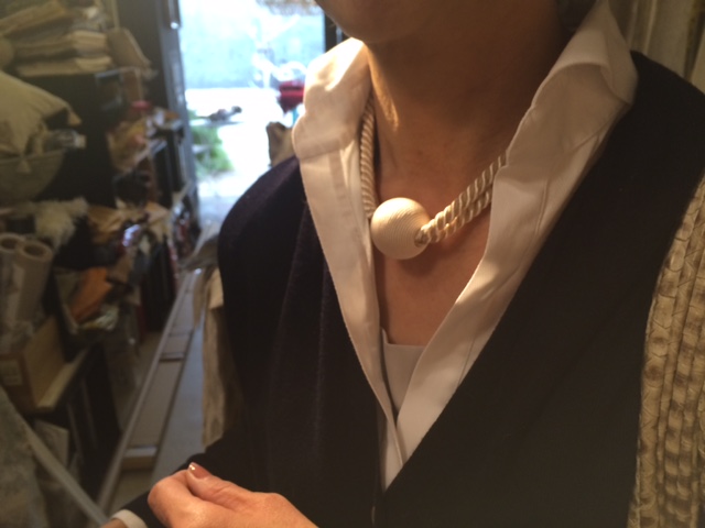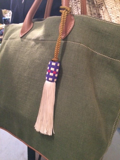 ご自身でデザインされたタッセルとアクセサリーがあまりにも素敵だったので写真を撮らせていただきました。東京ではタッセルづくりのレッスンをされているそうですが、関西ではなかなか機会がないとの事ですので、ぜひレッスンをしていただきたいとお願いしてみたところ… もしかしたら近々実現するかもしれませんっ!