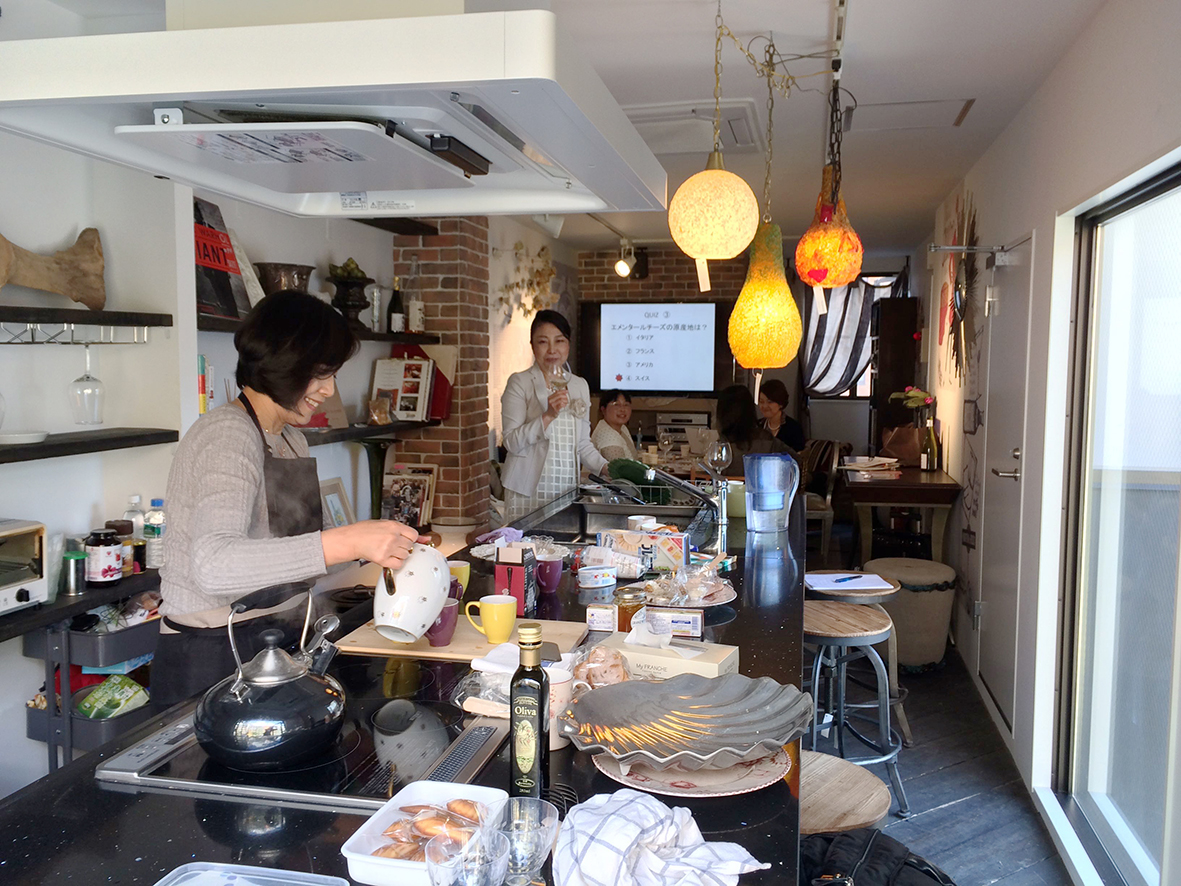 元CAさんのマダムの石井由美子さんによるチーズの文化や種類を学ぶトークに始まり、クイズやテイスティング。パーティスタイルで、ワインを飲みながらのワークショップでとても賑やか⭐︎ そして今日は本当にお天気が心地よかったので、テラスの扉を開けると…. 外の風が入ってきて… 最高の空間でした。
