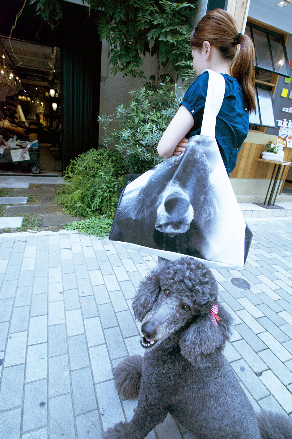 弊社アイドル犬のハナがバッグになりました。去年になりますが、4階で犬顔写真展を開催した際に写真家の坪倉さんに撮影していただいた写真を加工して完成したのが、このバッグ!(定期的に神戸にて犬顔撮影をされてます。「素敵な写真を撮影してもらいたい!」という方はコチラまで!ちなみに夏場はワンちゃんの体力を考えてお休みされるそう…)