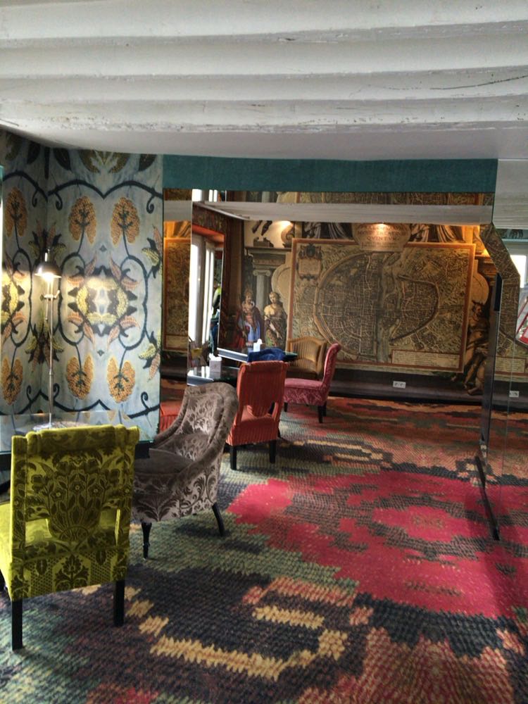 こちらがフロントロビーです。一つとして同じ椅子貼りがないし、沢山の色を使っているのにも関わらず素敵ー!壁と言う壁には全てグラフィックが印刷されており、とにかく圧倒されます。王政時代に多くの文化を育てたフランス。革命によって市民の不満が爆発しましたが、やはりインテリア装飾に於いては長い歴史が生み出してきた凄みを感じます。クリエイターがそれぞれの感性で色付けをして新しいものが生まれていく… そんな事を考えながらHotel Notre Dame Saint Michel で眠れました。
