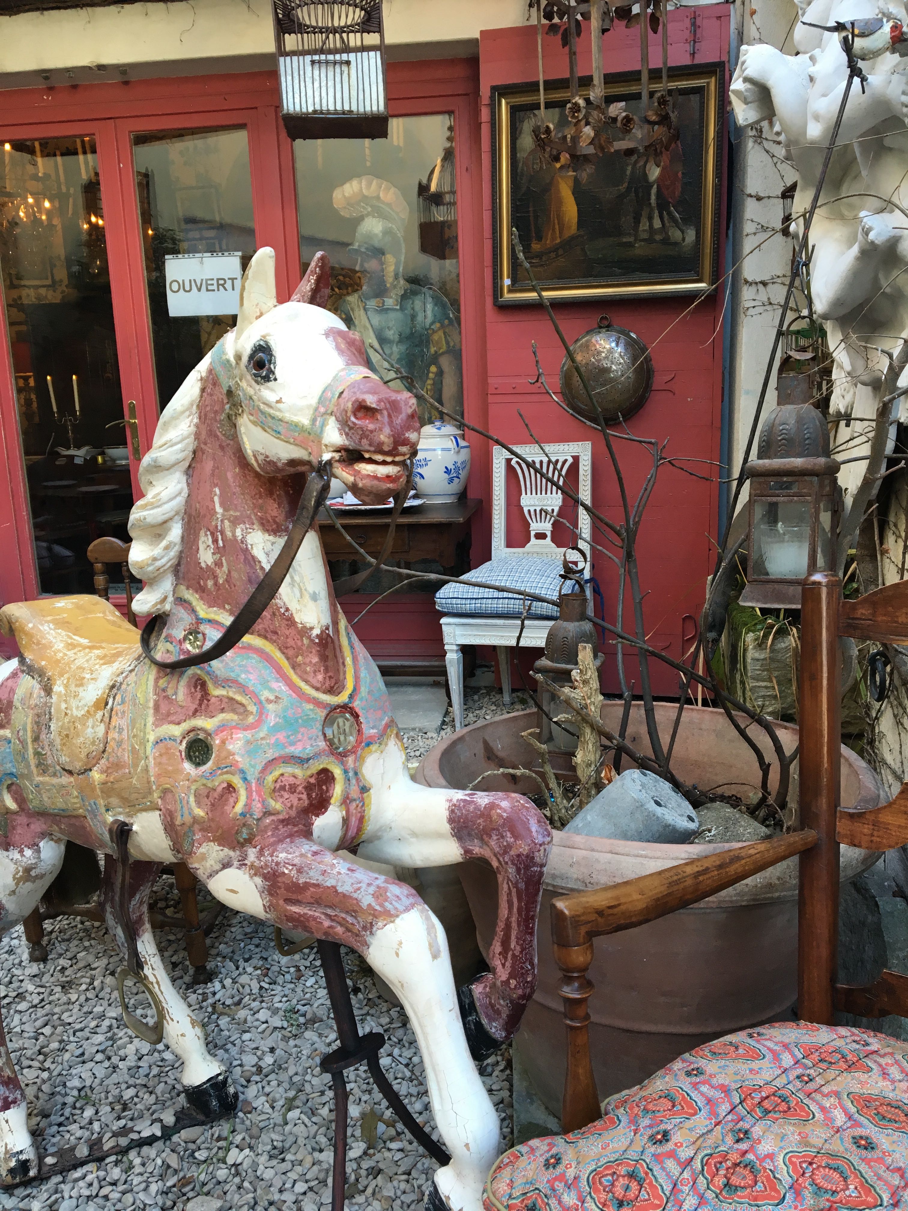 まずは、南仏のリル・シュル・ラ・ソルグ。パリからフランス国鉄で約2時間程南に下った場所で、一番大きな街・アビニオンから更に電車で20分。アンティークのお店が並ぶ小さな小さな田舎町です。お店を覗いてみると、いかにもフランス的なクラッシックなオブジェが並んでいます。