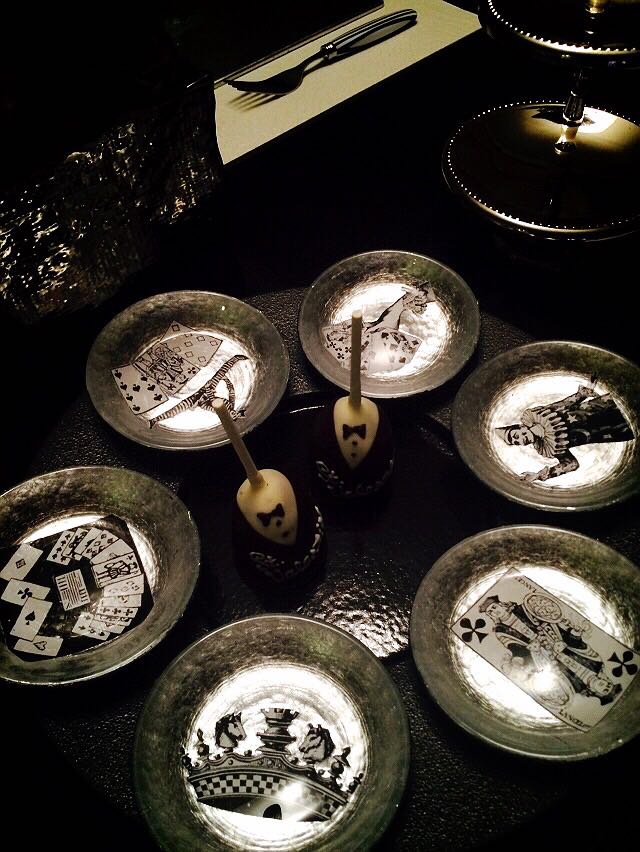 そして数時間後… 今回参加されたb.b.booのオーナーさまより届いた写真。トランプシリーズの豆皿がテーブルコーディネートされている!!しかもバレンタインのチョコレートと一緒に♡ ドット柄のお皿とシルバー豆皿がとってもかっこいいですよね。