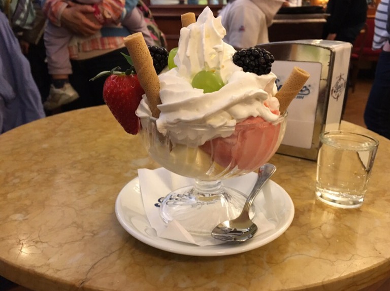 トリノの人はあるいはトリノに来る観光客はみんながジェラートを食べてるっと言っても過言じゃないぐらいに皆んながジェラートを食べていて、お店もいたるところにあるのです。そしてエスプレッソと小菓子、朝からパン屋さんでは無くて、カフェで小さいお菓子とエスプレッソなのです。私はさすが朝からはお菓子とは食べれなかったのですが、夕方にジェラートを食べました。その大きいこと、流石これはたべきれませんでした。皆んなも小さいジェラートを食べているのです。こういうお店も殆どがオールド庶民的で美し過ぎずに雰囲気があります。これも美的食感というものでしょうか