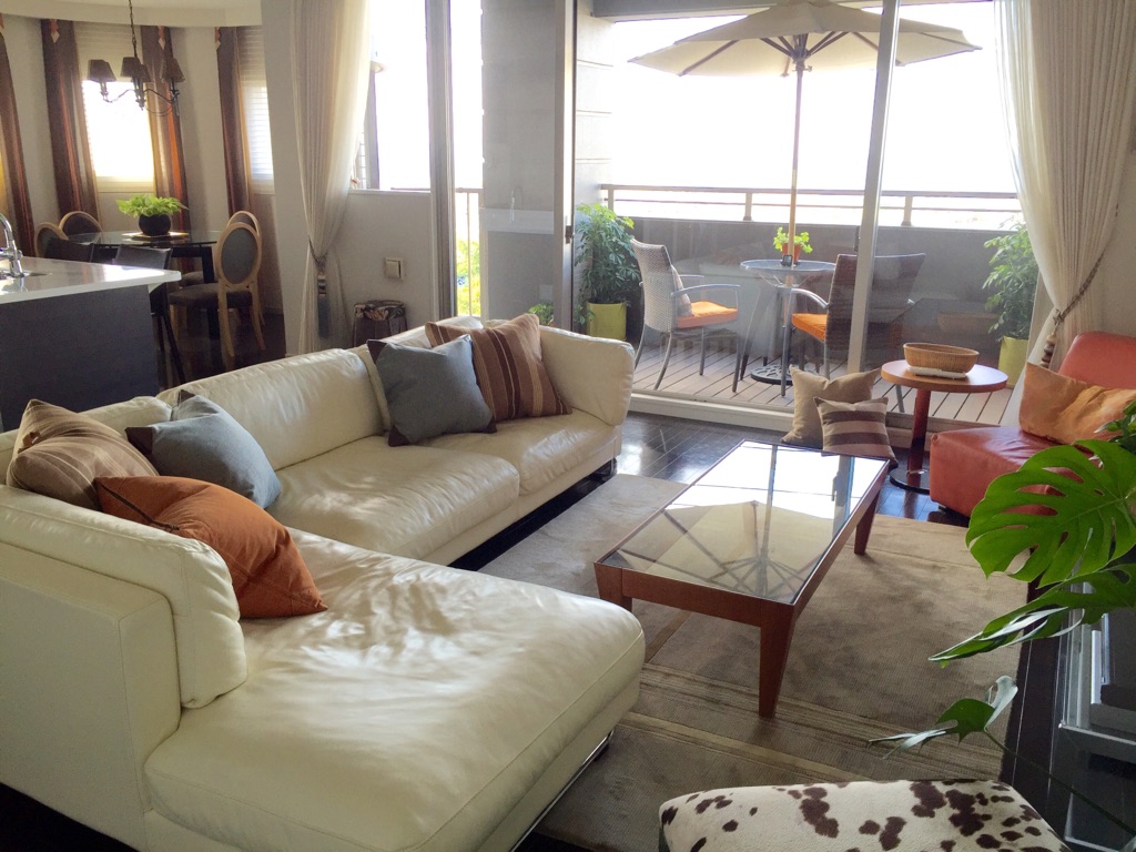 最後は、こちらのお客様です。白ベースのオレンジがアクセントとなるお部屋に、ブルーのクッションが加わりました⭐︎ 写真では見えないのですが、手前のアニマル柄のスツール(Uttermost)の脚がブルーなんです。このように少しずつ色味を加えるだけで、どんどん豊かな彩りが楽しめます!