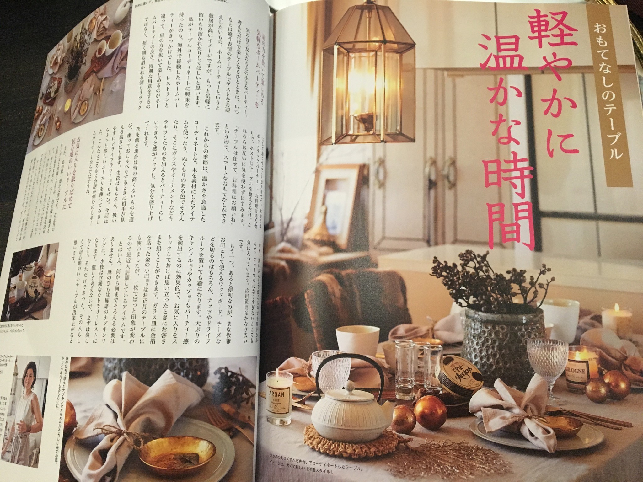 クリスマスとお正月のテーブルコーディネートなのですが、山本さんの鋭いセンスが光っております。とコーディネートも秋を感じる色遣いで、「食」の空間をここまで楽しくできるのか?!と勉強になる事ばかりです。山本さん自身は、生活をかなり楽しんでいらっしゃり、日頃仕事に追われる日々を過ごしている私としては、憧れの存在です⭐︎