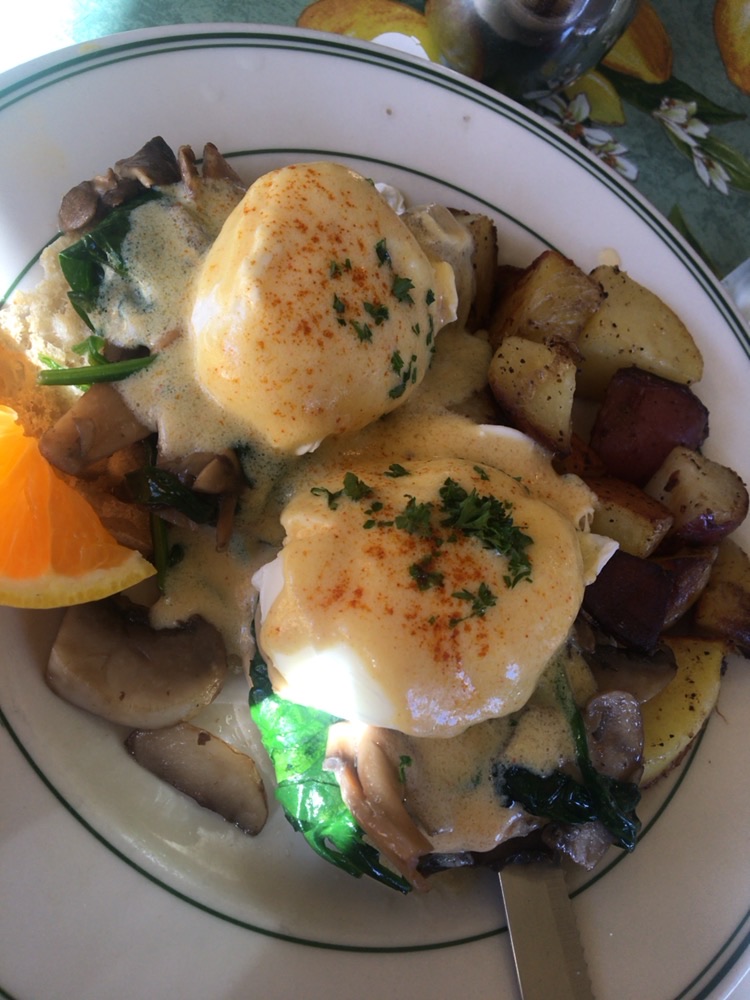 アットホームな昔ながらのカフェという感じです。日本では食べることのできない、アメリカらしいチーズとクリームたっぷりのエッグベネディクト!美味しかったです。