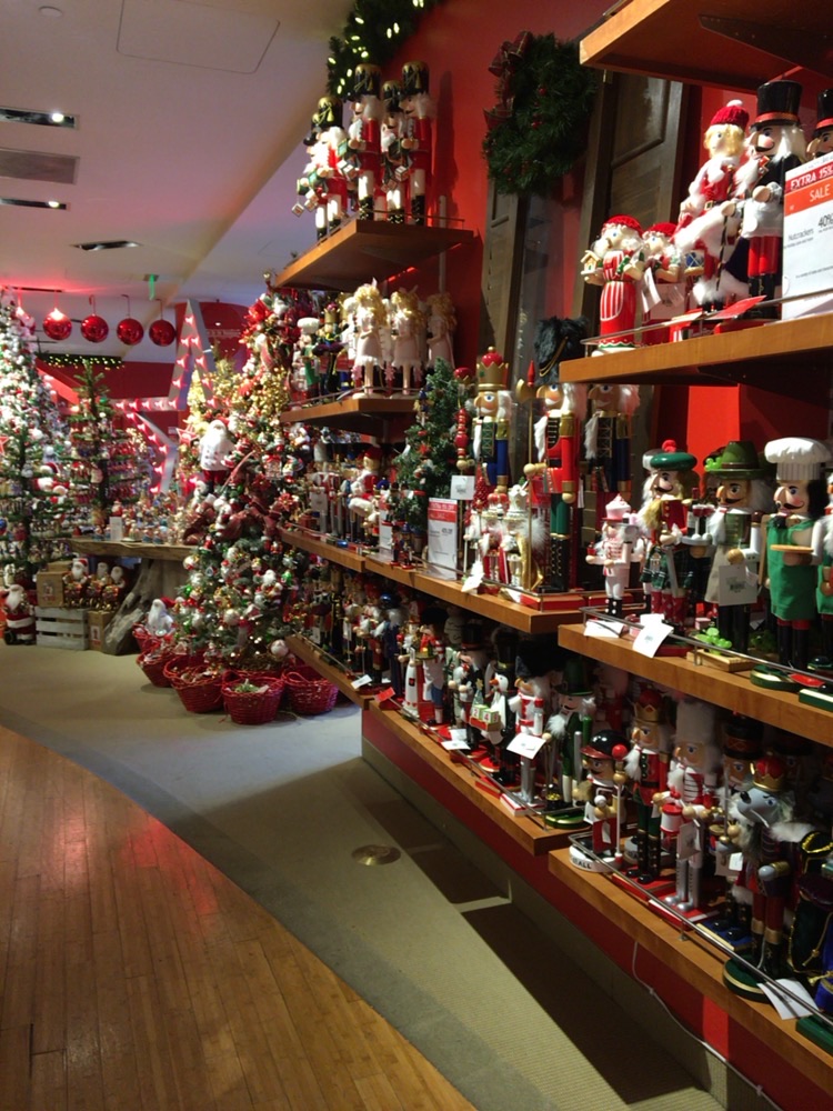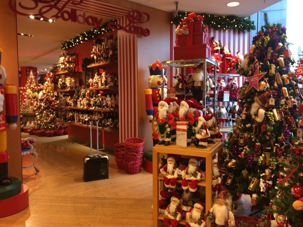 下の写真はMacy’sのクリスマスです。とにかく売り場全体がクリスマスで、贅沢に飾られたツリーは圧巻です。プレゼントを入れる靴下にも、クリスタルやビーズが付いていて豪華そのものでした。
