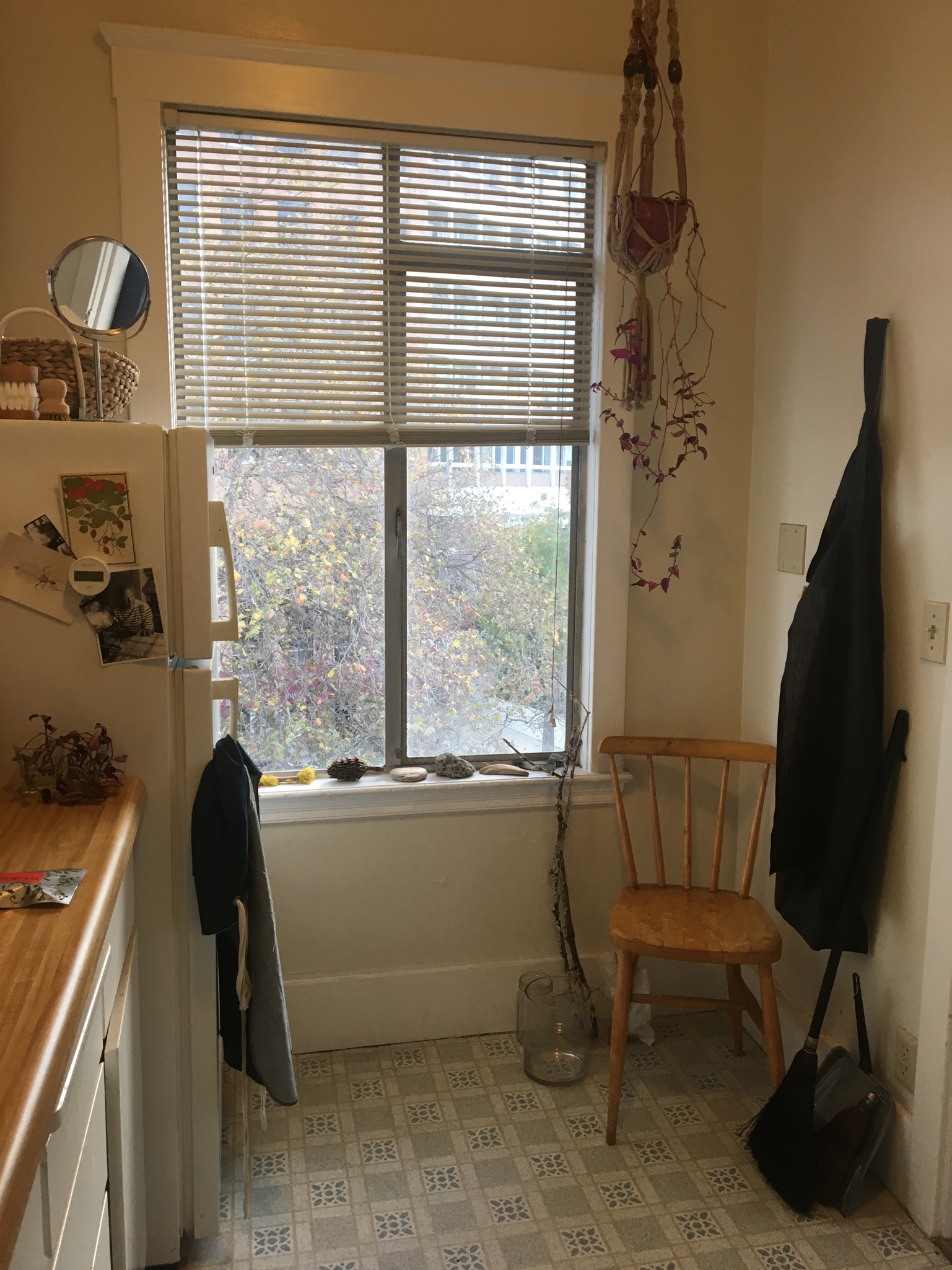 こちらはキッチンです。外に見える木々、色んな場所で集めて来たと思われる石などがちょこっと置いてあり、それがオブジェの様でした 笑