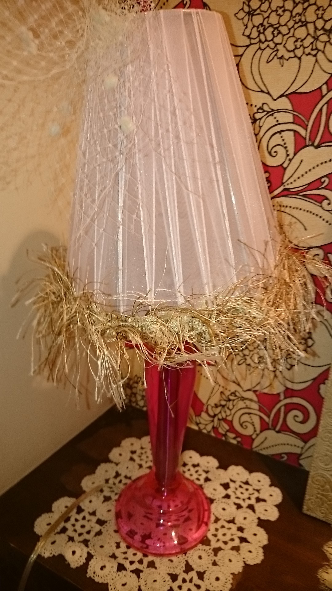 小振りのランプシェードは生地が劣化してしまったのでリサブレアにあるシェードの様にして欲しいとご要望があり、その物をよく観察してみるとシフォンテープをぐるぐると巻いているだけの仕上がりにびっくり!