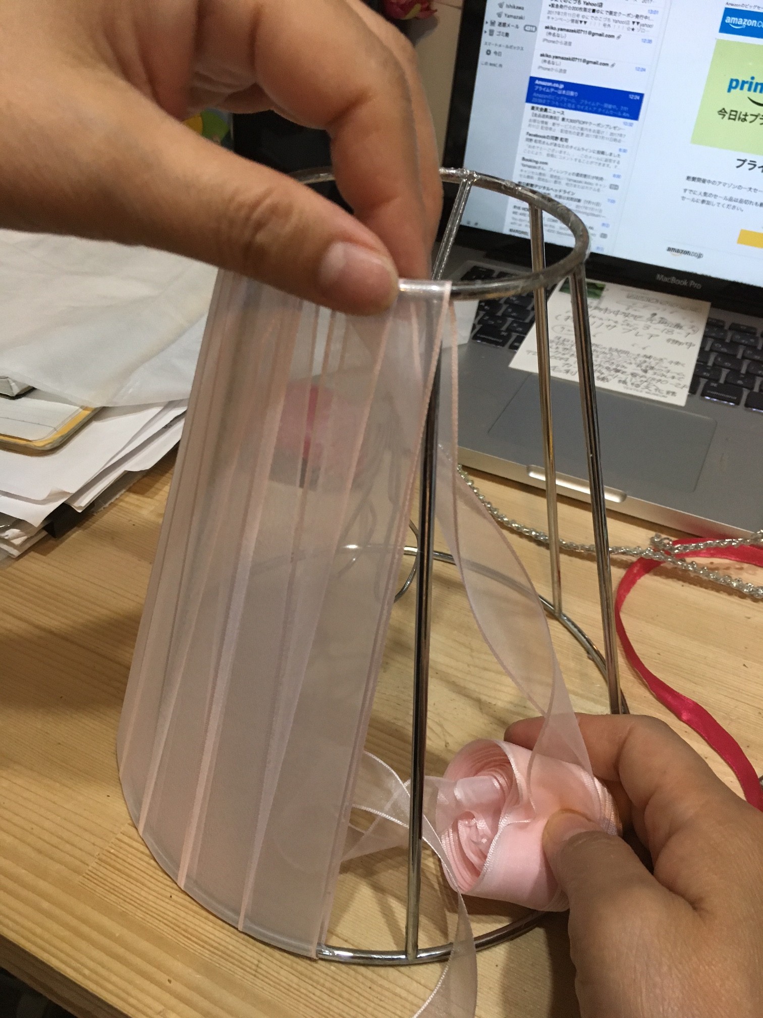 此の様な感じで簡単に出来、シフォンテープも多色あるので色んな色味でも出来ます。