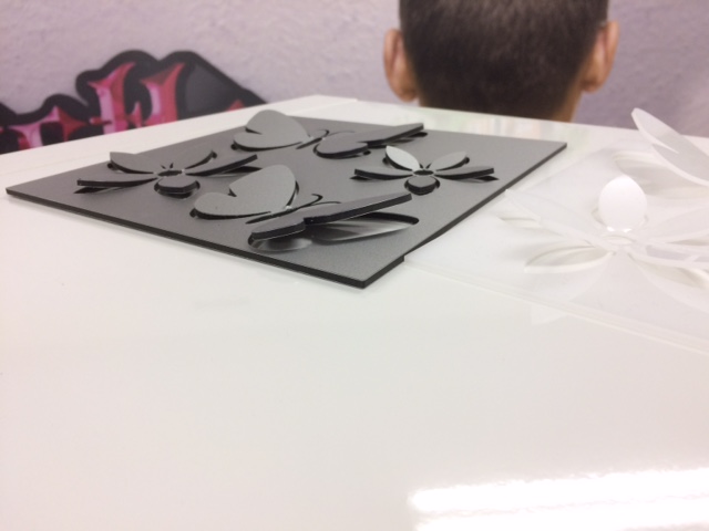こういった機械で壁紙やフィルムに印刷したり、合皮に印刷して椅子カバーや、バッグ、またアクリルのオブジェなども作っておられました。