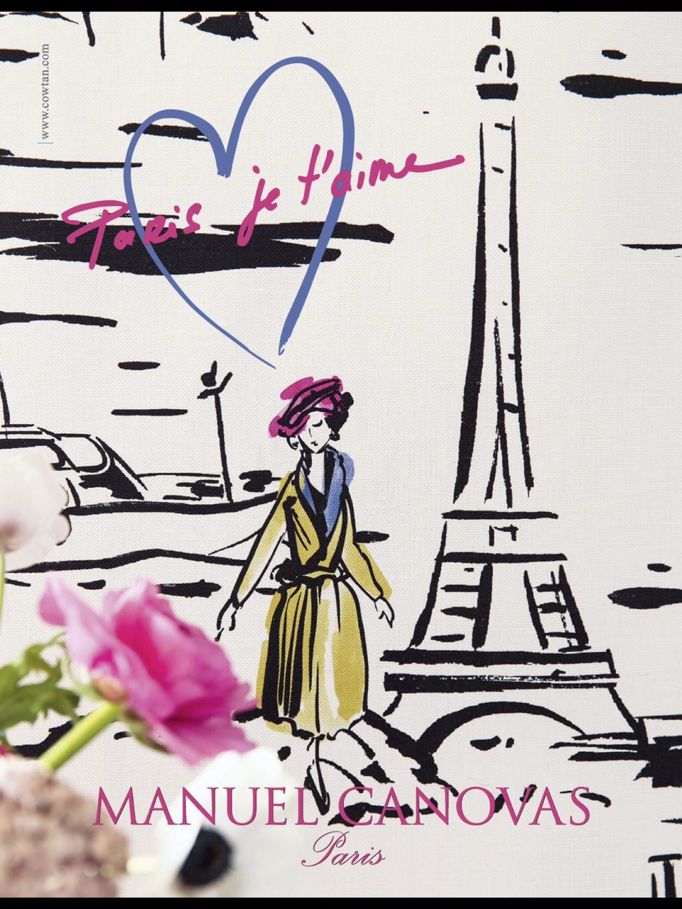 最近のリサブレアお気に入りファブリックを1階に展示すべく着々と縫製すすめていますが、その中でマニュエル・カノーバスのお気に入り生地、ディスプレイするものがエルデコのアメリカ版の広告に使われていました。パリのエッフェル塔とパリのレディのイラスト、黒のイラストなのにうまくポイントカラー使い。一目ぼれの生地です。この生地でカーテンをするお部屋はどんなお部屋かな?イマジネーションが膨らみます