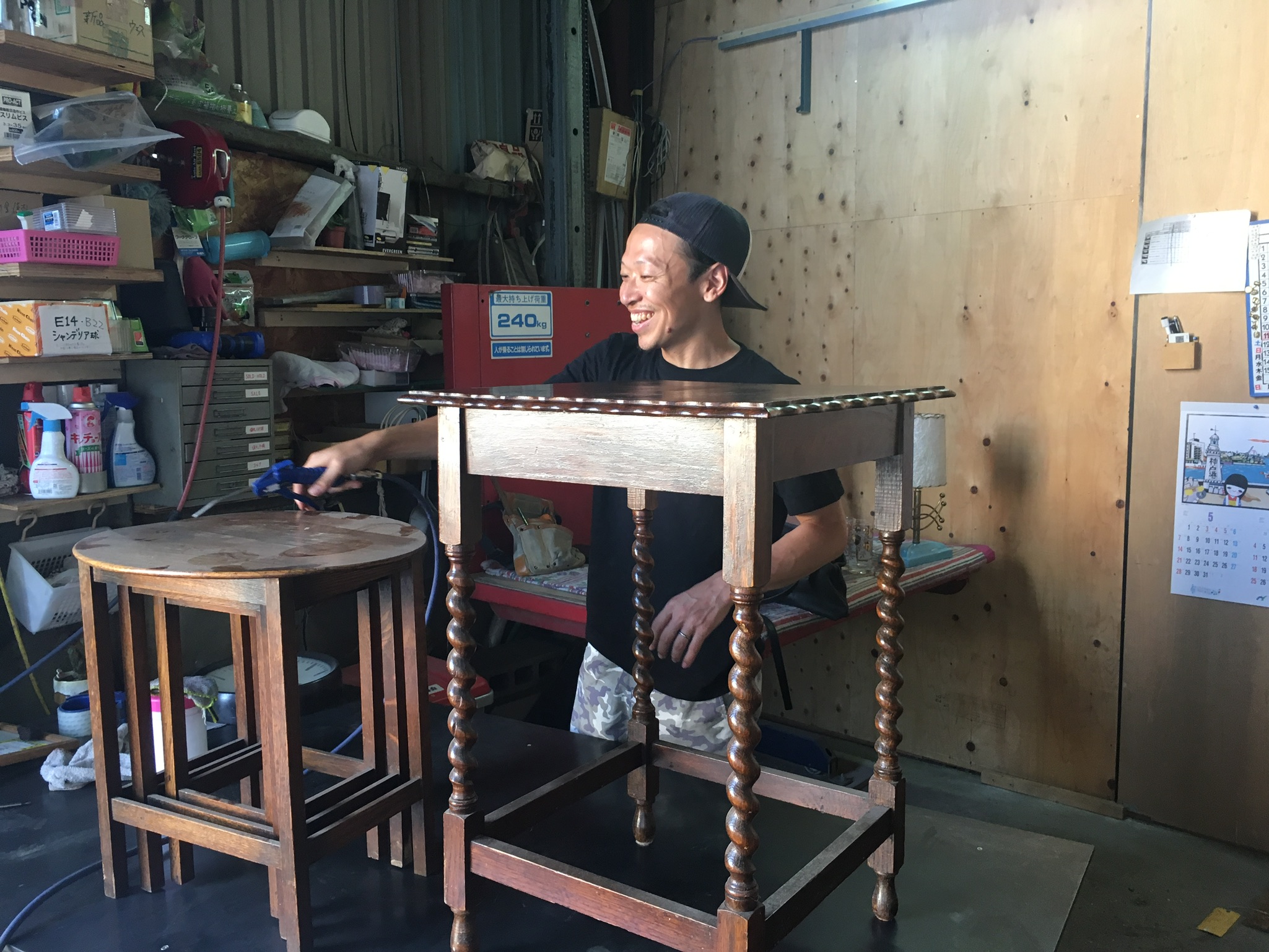 スタッフの亮太くん。実はリサブレアにも一時期お手伝いに来てくれていたので、顔を知っている方もいらっしゃるかもしれません。商品を1点1点掃除したり修理したりしてから店頭に並びます。スタッフ全員が仕事が大好きで楽しさが伝わってきます。