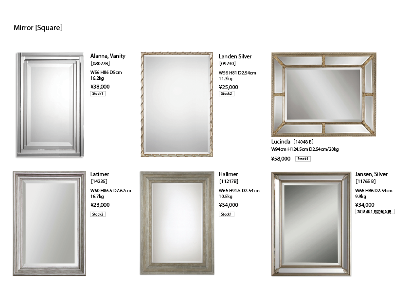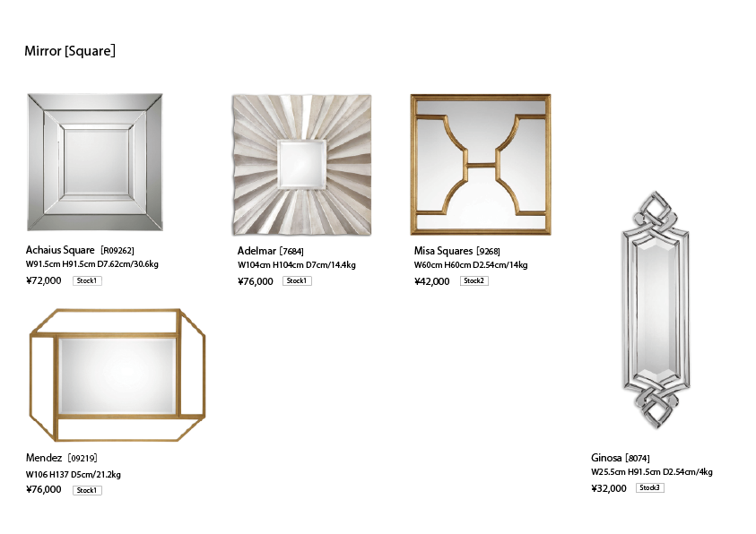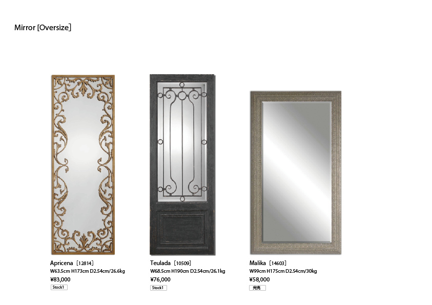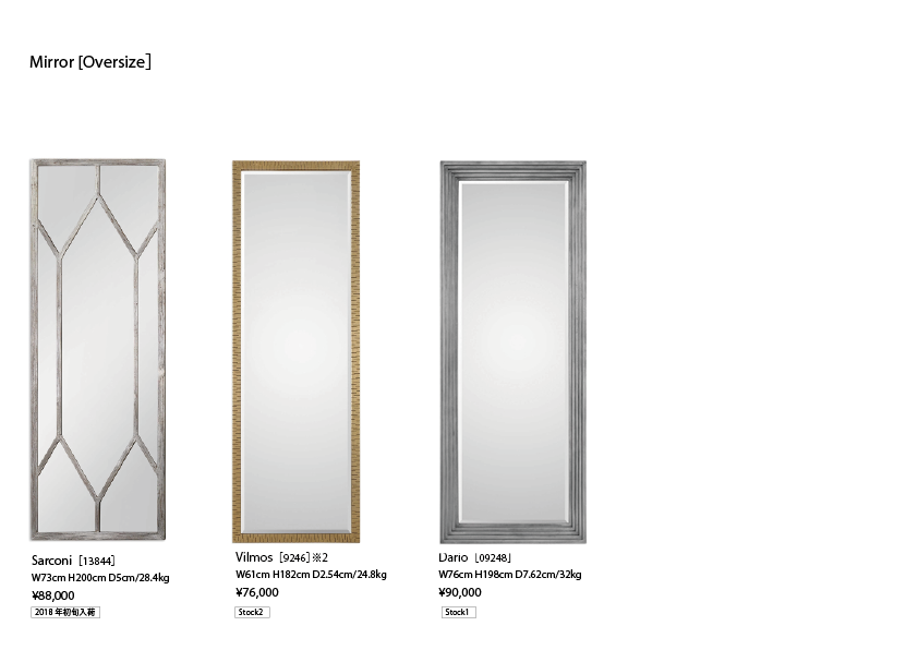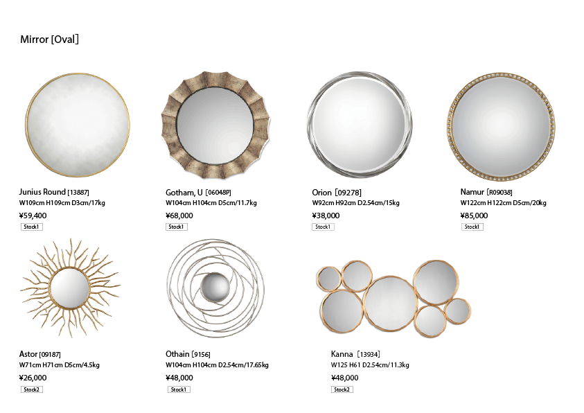オブジェ等も多少入荷していますが、今回は鏡がメインに入ってきています。