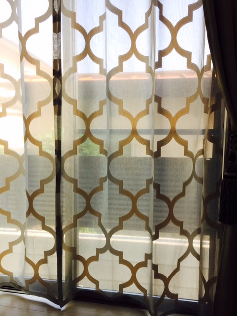薄いグレーベースにゴールド色のモロッカン柄を刺繍している生地です。