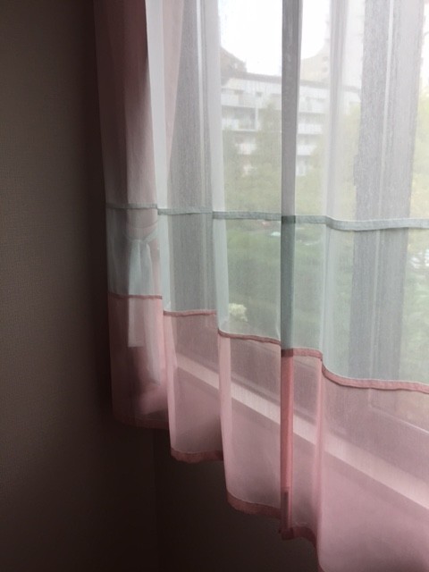3色のレースを組み合わせた切り替えスタイル。窓側に机を配置されることもあって