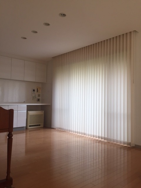 広いリビングダイニングにはすっきりとしたバーチカルブラインド。