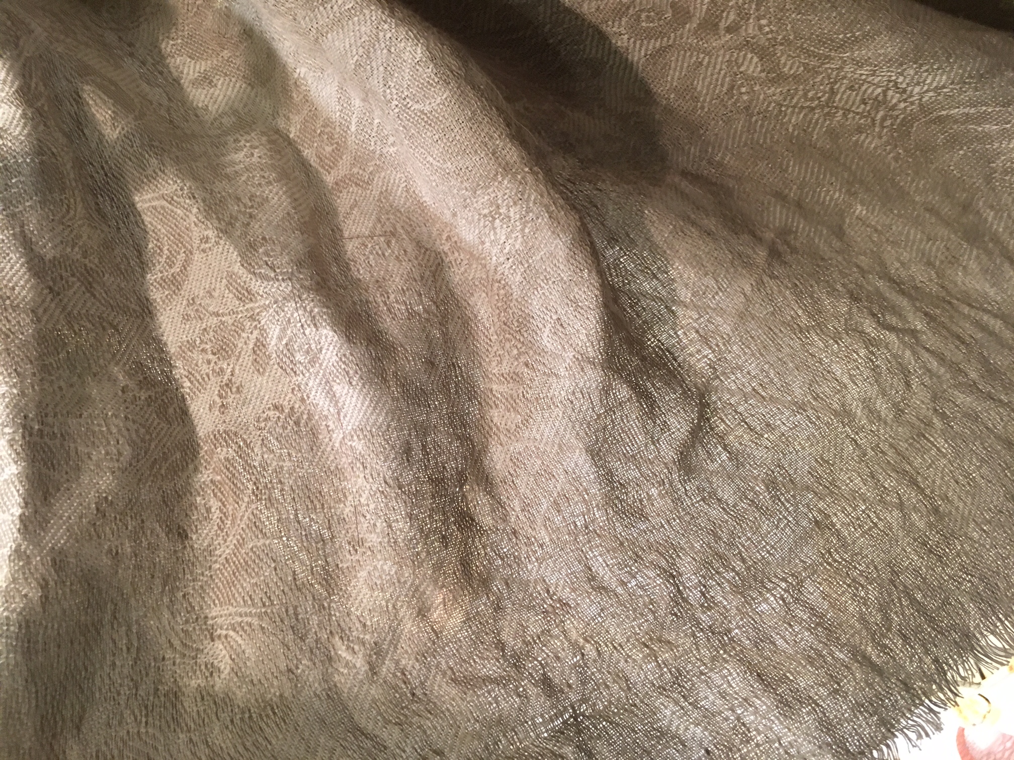 こちらが、ブサッティの生地。適度な透け感と、麻の柔らかな質感。写真ではやっぱり伝わりにくいですね… ぜひ、お店に見にいらしてくださいませ。