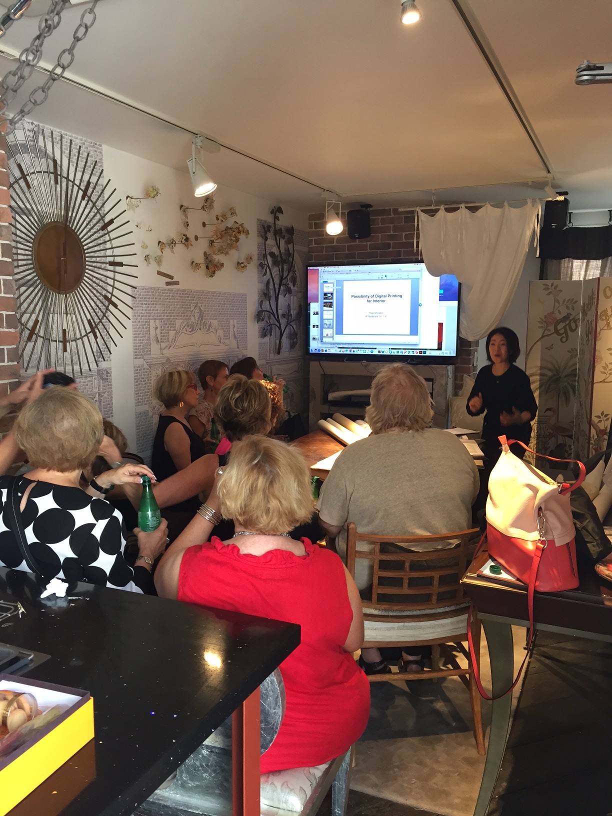 午前中は当社デザイナーの石川リサのインテリアセミナー(全編英語です)をお聞きいただきました。オリジナル壁紙のお話や、日本と西洋の壁紙の違い、日本の歴史や私たちのお宝である美しいモチーフをお見せしたり… とても有意義な時間と情報をシェアさせて頂きました。
